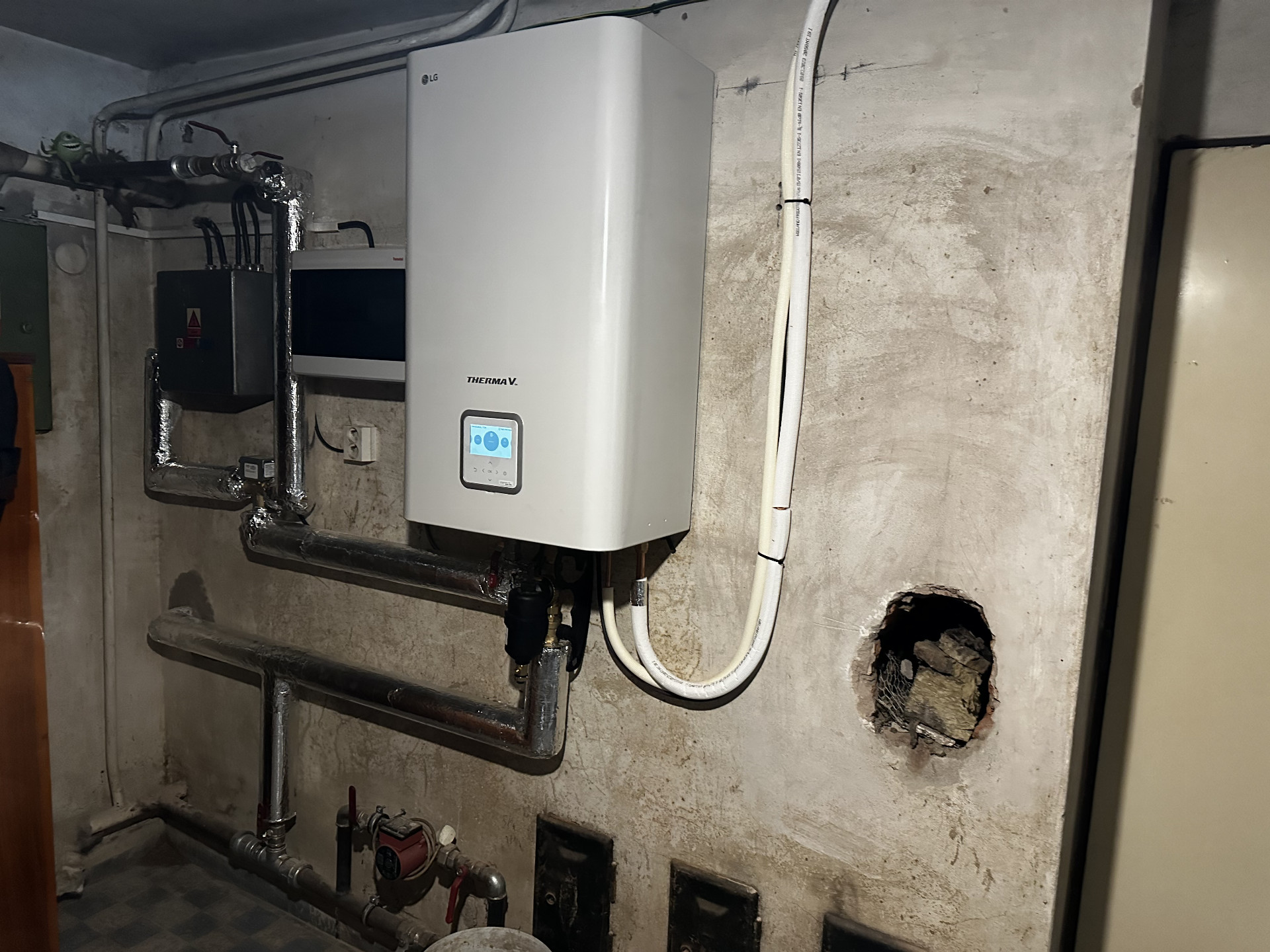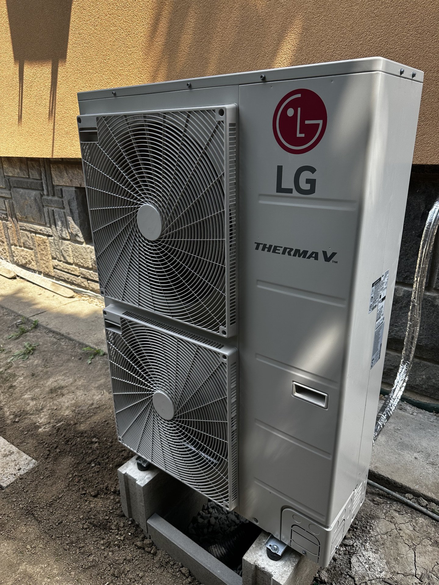 Instalace tepelného čerpadla LG ThermaV 12 kW na stávající dvoupodlažní rodinný dům. Původní vytápění zde bylo řešeno kotlem na tuhá paliva.